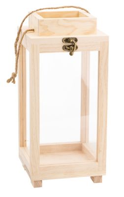 Laterne aus Holz, mit Acrylglasfenster und Deckel zum Öffnen und Schließen, zum Bemalen, Gestalten oder Dekorieren, Farbe: natur, Größe: 15 x 15 x 32 cm.