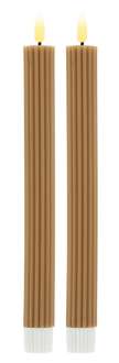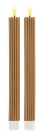 LED-Stabkerzen aus Echtwachs, mit 6h Timer, Farbe: braun, gerillt, Größe: 24,5 cm hoch, 2,2 cm Ø, Inhalt: 2 Stück, Lichtfarbe: warmweiß, nicht für den Außenbereich geeignet. Ohne Batterien. Sie benötigen noch je 2x AAA Batterien.