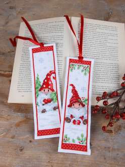 Lesezeichen "Wichtel", im 2er-Set, zum Besticken nach Zählvorlage in Kreuz- und Spannstich (ca. 5,4 Stiche/cm). Komplettpackung: Anleitung, Zählvorlage, Garn, Sticknadel. Stofffarbe: weiß. Größe: 6 x 20 cm. Material: Aida-Stoff und Garn 100 % Baumwolle.