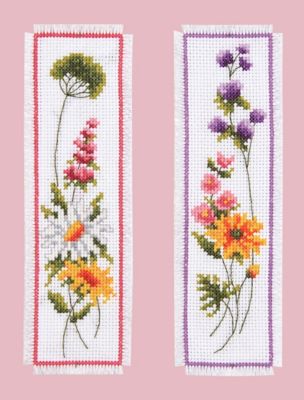 Lesezeichen "Wiesenblumen", im 2er-Set, zum Besticken nach Zählvorlage in Kreuzstich (ca. 5,4 Stiche/cm). Komplettpackung: Anleitung, Zählvorlage, Garn, Sticknadel. Stofffarbe: weiß. Größe: 6 x 20 cm. Material: Aida-Stoff und Garn 100 % Baumwolle.