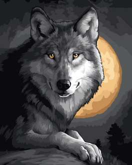 Malen nach Zahlen "Wolf", Inhalt: Malkarton mit vorgedrucktem Motiv in der Größe 30 x 40 cm, Acrylfarben, Pinsel und Anleitung.