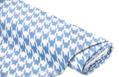 Mantelstoff "Hahnentritt", Farbe: blau/weiß, Motivgröße: 6 x 3,5 cm, Stärke: 2 mm, Breite: 140 cm, Gewicht: ca. 380 g/m². Material: 100 % Polyester.