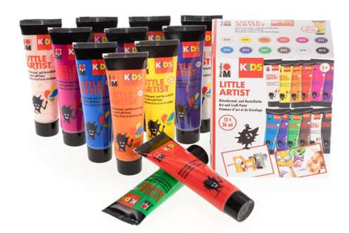 Marabu KiDS "Little Artist" Künstlermal- und Bastelfarbe auf Wasserbasis, Inhalt: 12x 36 ml in den Farben rosé beige, gelb, orange, rot, pink, violett, hellblau, dunkelblau, grün, braun, weiß und schwarz. Geeignet ab 3 Jahren.