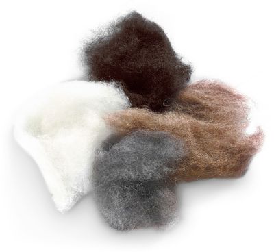 Naturwolle im Vlies, nicht gefärbt, aus Merino-Schurwolle, geeignet zum Nass- und Trockenfilzen. Inhalt: 4 Farben à 25 g = 100 g. Material: 100 % Schurwolle.