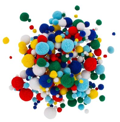 Pompons, Farbe: bunt, Größe: 4–25 mm Ø, Inhalt: 400 Stück. Material: 100 % Polyester.