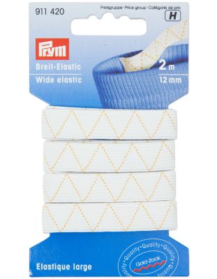 Prym Gold-Zack Gummiband "Breit-Elastic", besonders hohe Dehnfähigkeit, vielseitig verwendbar, Farbe: weiß, Breite: 12 mm, Länge: 2 m. Material: 70 % Polyester, 30 % Elastodie.
