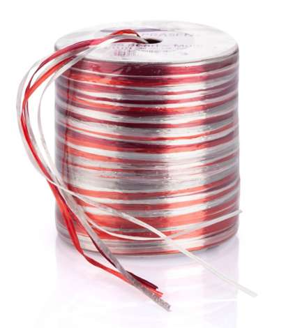 Raffia-Bast Pearl, Farbe: rot-weiß-silber, Breite: jeder Strang 2 mm breit, 5-strängig, Inhalt: 50 m.