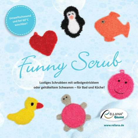 Rellana Heft "Funny Scrub". 11 Modelle mit Anleitungen. Heft mit 28 Seiten. Größe: 21 x 21 cm.