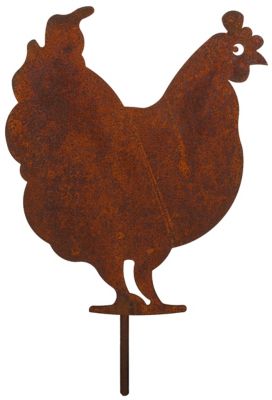Rost-Huhn aus Metall, Farbe: braun, Größe: 20 cm, Stablänge: 10 cm.