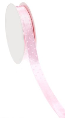 Satin-Tupfenband, Farbe: rosa, Breite: 15 mm, 10 m pro Rolle. Material: 100 % Polyester.