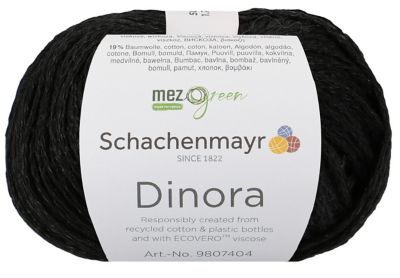 Schachenmayr Dinora. Wie viele andere Schachenmayr-Garne gehört auch Dinora dank ihrer Garnzusammensetzung zur MEZ-Green-Linie: Die Viskose stammt aus einer zu 100% nachhaltigen Forstwirtschaft und der Polyesteranteil aus recycelten PET-Flaschen. So strickt bei all Ihren Vorhaben das gute Gewissen mit. Wie wäre es also mit Pullis oder Jäckchen, die angenehm kühl auf der Haut liegen? Der runde Faden sorgt für ein ausdrucksstarkes Maschenbild, das wunderbar ineinanderfließt und sowohl schlicht als auch als Struktur- oder Lochmuster schön zur Geltung kommt. Also: Wählen Sie einen der schönen, leicht glänzenden Farbtöne aus und schon kann’s losgehen!