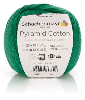 Schachenmayr Pyramid Cotton. Mussten Sie bei dem Namen auch sofort an die wunderschönen Bauten rund um den Nil denken? Das wundert uns nicht, denn tatsächlich stammen die verwendeten Baumwollfasern aus Ägypten. Aufgrund der klimatischen Bedingungen entsteht eine besonders schöne und hochwertige Baumwollfaser, deren Faserlänge länger ist als üblich. Dadurch ist das ganz klassisch und rund gezwirnte Baumwollgarn nicht nur sehr weich, sondern auch absolut strapazierfähig und trotz 40°-Maschinenwäsche langlebig! Jetzt sind Sie an der Reihe: Ob häkeln oder stricken, ob Loch- oder Strukturmuster, ob einfarbig oder Farb-Mix – Ihre neuen Lieblings-DIYs werden in jedem Fall absolute Hingucker!