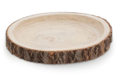 Schale aus Baumscheibe, rund, naturbelassen, Größe: ca. 25 cm Ø, Höhe: ca. 3,5 cm, Tiefe: 2,0 cm.
