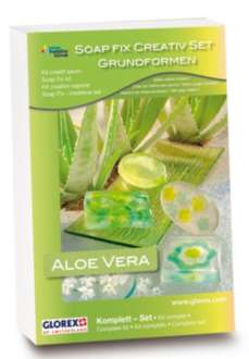 Seifengieß-Set "Aloe Vera". Inhalt: 1 Gießform (Grundformen rund, oval, rechteckig, quadratisch), 300 g Öko-Glycerinseife Aloe Vera transparent, Naturfarbstoff grün und gelb, 2 Mini-Ausstechformen, Holzspieße und Anleitung. Größe Motive: 5 - 8 cm.