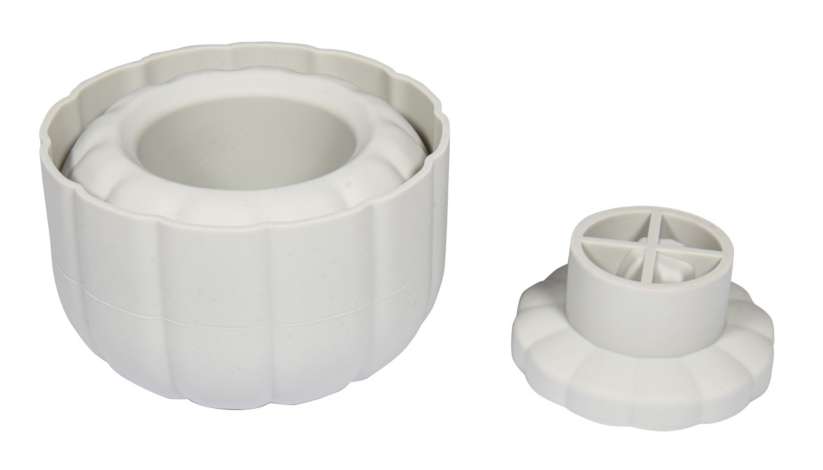 Gießform "3D Kürbis" aus Silikon, mit Deckel, frost- und hitzebeständig. Größe: 10 cm Ø, Höhe: 8,5 cm. Geeignet für Raysin/Gießmasse, Gießbeton und Epoxidharz. Materialverbrauch: Raysin/Gießmasse 400 g, Gießbeton 480 g.