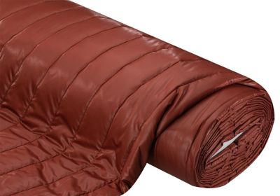 Steppstoff "Streifen", Farbe: rostrot, wattiert, Abstand der Steppnähte: 6,5 cm, Stärke: 1,5 cm, Breite: 135 cm, Gewicht: ca. 200 g/m². Material: 100 % Polyester.