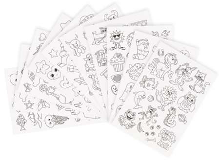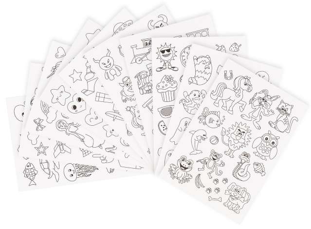 Sticker zum Ausmalen, Inhalt: 10 Bogen = 160 Motive zum Ausmalen.