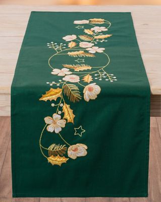 Stickläufer "Christrosen", zum Besticken in Stiel-, Plattstich und Nadelmalerei. Vorgedrucktes Motiv, randfertig gesäumt. Komplettpackung: Anleitung, Garn, Sticknadel. Stofffarbe: dunkelgrün. Größe: 35 x 95 cm. Material: Stoff und Garn 100 % Baumwolle.