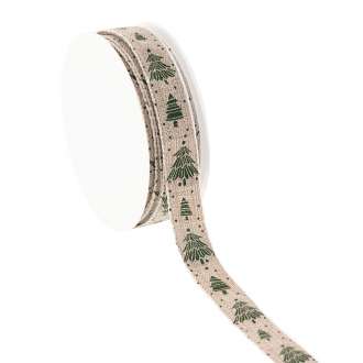 Stoffband "Bäume", Farbe: natur-grün, Breite: 15 mm, 5 m pro Rolle. Material: 100 % Polyester.
