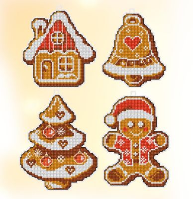 Stramin-Aufhänger "Lebkuchen-Formen", im 4er-Set. Die Motive werden in Kreuzstich auf Plastik-Stramin gestickt. Komplettpackung: Anleitung, Zählvorlage, Garn, Sticknadel. Größe: 9 x 10 cm. Material: Plastik-Stramin (ca. 5,4 Stiche/cm), Garn 100 % Baumwolle.