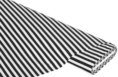 Streifen-Jersey, Farbe: schwarz/weiß, bi-elastisch, quer gestreift, Streifenbreite: 10 mm, Breite: 160 cm, Gewicht: ca. 180 g/m². Material: 93 % Baumwolle, 7 % Elasthan.