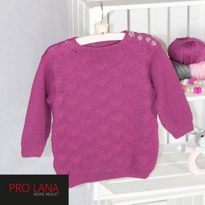 Strickanleitung – Baby Pulli aus Pro Lana Baby Cotton Organic. Dieser süße Pullover darf in keinem Kinder-Kleiderschrank fehlen. Ob für einen Ausflug mit der ganzen Familie, ein gemütlicher Spaziergang oder nur zum Drüberziehen wenn es frisch wird – das zeitlose Modell lässt Ihre Kleinsten immer Top gestylt aussehen. Gestrickt wird aus der Qualität Baby Cotton Organic von Pro Lana.