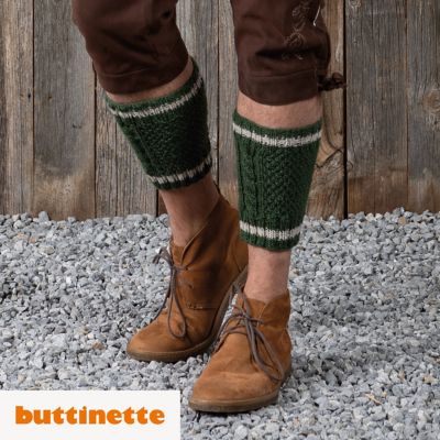 Strickanleitung - Loferl aus Woll Butt Tirol. Papa hat sich zur Feier des Tages in Schale geworfen und trägt zur Hirschledernen eine Trachtenweste mit Zopf- und Perlmuster. Die dazu passenden Loferl machen den zünftigen Look komplett und auch dem Nachwuchs kann man diese im Partnerlook stricken.