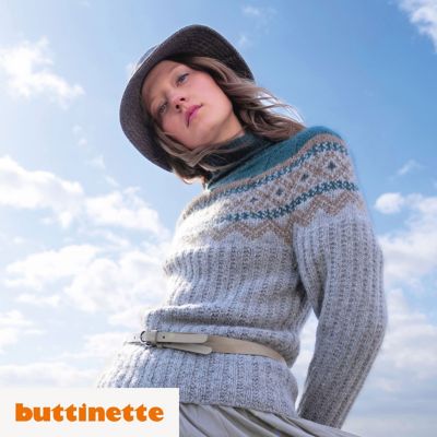 Strickanleitung – Pullover mit Jacquardpasse aus Woll Butt Primo Alpaka. Hellgrau als Basis, Smaragdgrün und Hellbraun als Schmuckfarben – so dezent begrüßen wir den Herbst. Und so raffiniert! Denn Vorder- und Rückenteil werden zuerst im einfachen Rippenmuster in Runden gestrickt, dann folgen die Ärmel und zum Schluss vervollständigt die Jacquardpasse mit Rollkragen – ebenfalls in Runden – den Look der Extraklasse.