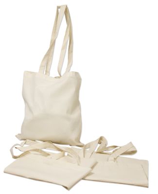 Tragetasche mit langen Henkeln, Farbe: natur, Größe: 38 x 42 cm, Inhalt: 10 Stück. Material: 100 % Baumwolle in Leinwandbindung.
