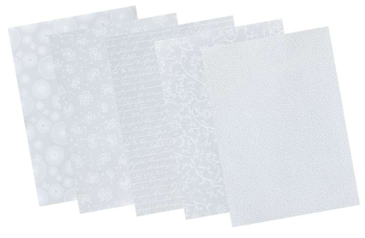 Transparentpapier "Anlässe", 5-fach sortiert, Farbe: weiß, Größe: 21 x 29,7 cm (DIN A4), Gewicht: 115 g/m², Inhalt: je Motiv 2 Blatt = 10 Blatt.