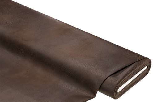 Weiches Kunstleder in Antik-Optik, Farbe: schokobraun, mit textiler Rückseite (weiß), Lichtechtheit: 4, Scheuerwert: > 40.000 Touren, Breite: 140 cm, Gewicht: ca. 190 g/m². Material: 100 % Polyester.