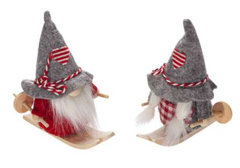 Wichtel auf Skiern, rot-grau-weiß, 10,5 cm, 2 Stück