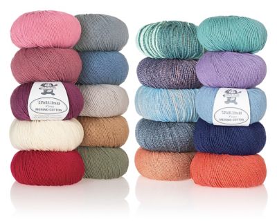Woll Butt Primo Merino Cotton. Feinste Merinowolle und weiche Baumwolle – ein Dreamteam für ein wunderbares Ganzjahresgarn! Woll Butt Primo Merino Cotton wärmt im Winter, ohne zu überhitzen; an warmen Tagen wirkt die Mischung temperaturausgleichend, nimmt viel Feuchtigkeit auf und gibt diese wieder an die Umgebung ab. Die superweiche, völlig kratzfreie Haptik ist auch für Kinder und Personen mit sensibler Haut optimal. Zaubern Sie daraus Kleidung wie Pullover, Cardigans und Pullunder, aber auch Accessoires wie Schals, Mützen, Stirnbänder uvm. Das glatte, sechsfädig verzwirnte Garn eignet sich zum Häkeln genauso wie zum Stricken und bringt Muster aller Art toll zur Geltung. Nun sind Sie an der Reihe: Wählen Sie doch gleich Ihre Lieblingsfarbe(n) aus, legen Sie das Garn zusammen mit den passenden Nadeln in Ihren Warenkorb – und freuen Sie sich auf gemütliche Handarbeitsstunden!