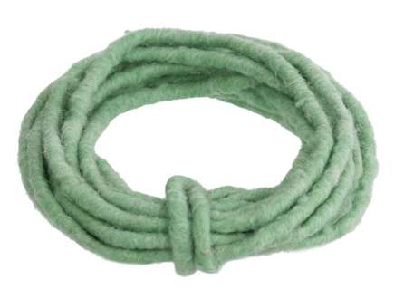 Wollkordel mit Jutekern, Farbe: mint, Stärke: ca. 7 mm Ø, Länge: 5 m. Material: 100 % Schurwolle.