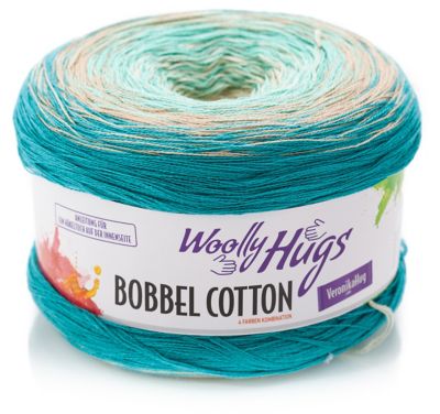 Woolly Hugs Bobbel Cotton. Die neue Woll-Qualität der bekannten Handarbeits-Designerin und -Autorin Veronika Hug! Bobbel Cotton, ein 4-fädig gefachtes Garn, wechselt stets in gleichmäßigen Abständen einen einzelnen Faden, wodurch sich die wunderschönen, harmonischen Farbverläufe ergeben. Die winzigen Knoten, die durch das Anknoten der anderen Garnfarbe entstehen, sind im fertigen Modell kaum sichtbar. Jeder Bobbel (schwäbisch für "Knäuel") kann – je nach gewünschter Farbabfolge – von innen nach außen oder umgekehrt verarbeitet werden. Stricken Sie aus Woolly Hugs Bobbel Cotton Tücher, Pullover, Schals uvm., die fantastisch aussehen und dank der ultraweichen Baumwollmisch-Qualität herrlich angenehm zu tragen sind!