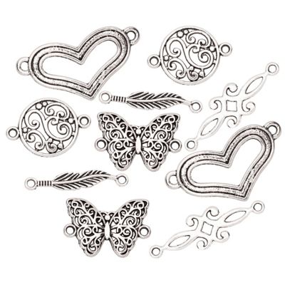 Zwischenteile "Schmetterling", Größe: 20–30 mm, Inhalt: 10 Stück, 5-fach sortiert. Material: Zinkdruckguss.